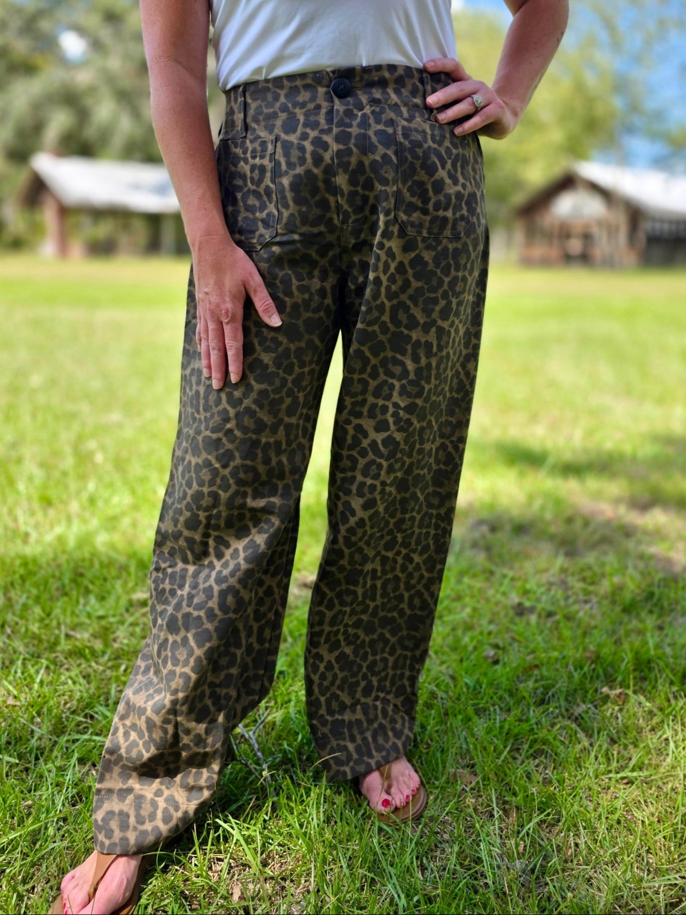 Umgee Animal Print Non-Stretch Wide Leg Pants